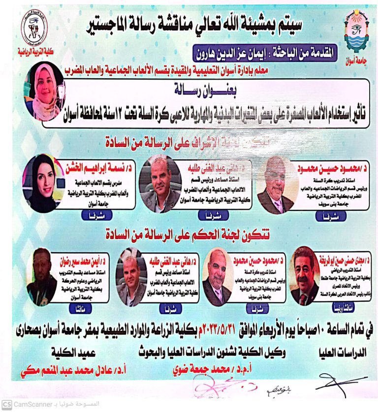 A master's thesis submitted by the researcher/ Iman Ezz El-Din Haroun entitled “The effect of using mini-games on some physical...