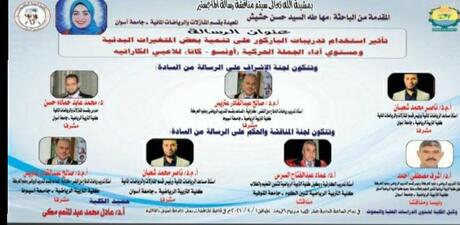 The master thesis of the Fights and Water Sports Department of the Researcher/ Maha Taha Al-Sayed Hassan- Researcher in the Fights and Water Sports Department-Faculty of Physical Education-Aswan University shall be discussed on Wednesday corresponding to 1/9/2021 at 11 am in the hall of discussions at the headquarter of Aswan University in Cairo.