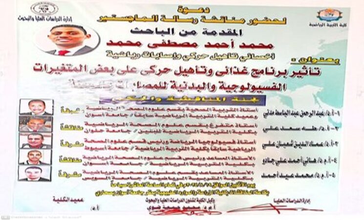 It was decided to discuss the master thesis of the researcher, Mohammed Ahmed Mostafa, under the title of