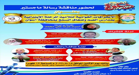 Master Thesis Discussion of the Researcher/Esraa Ezzat Ali under the title of ” National Aberrations For Primary Students For Deaf & Hearing  School at Aswan Governorate”