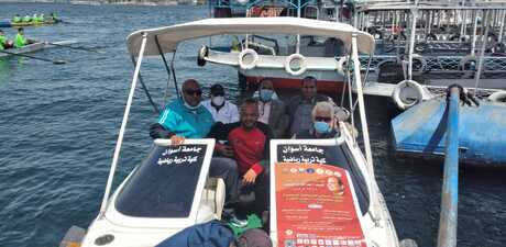 Prof.  Ahmed Ghallab Mohamed, President of Aswan University, witness the second day of the activities of the International Forum for Sports Tourism at the Rowing Club, which began with water sports shows under the title of the water festival, sailing and kayak shows, by watching the offers and capabilities of the university from water boats used in water games, and this comes in the framework for implementing the presidential initiative launched by President Abdel Fattah El-Sisi, President of the Republic, which was implemented by Aswan University headed by Prof. Dr. Ahmed Ghallab Mohamed, President of Aswan University.