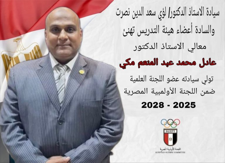 تهنئة للدكتور/ عادل مكى لاختياره عضو باللجنة العملية التابعة للجنة الأولمبية المصرية