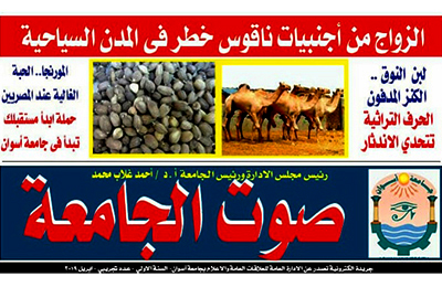 جامعة أســوان تصدر أول جريدة إلكترونية بعنوان (جريـدة صــوت الجامعــة) من خــلال الإدارة العـامة للعلاقات العامة والإعــلام بالجامعة كعدد أول تجريبي فى...