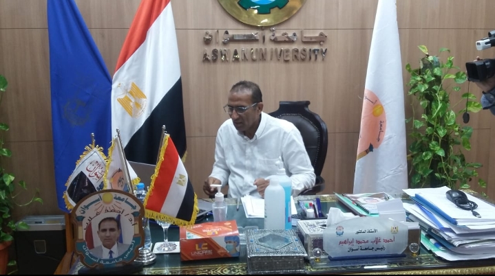 انعقد اليوم الأحد مجلس جامعة أسوان عبر تقنية الفيديو كونفراس رقم 96 برئاسة الأستاذ الدكتور أحمد غلاب محمد رئيس الجامعة وبحضور الدكتور أيمن عثمان نائب رئيس الجامعة للدراسات العليا والبحوث وعمداء الكليات .