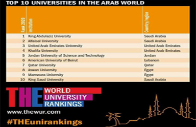 أفضـــل عشرة جامعـات علي مستوى العالم العربـي فى تصنيف (THE).