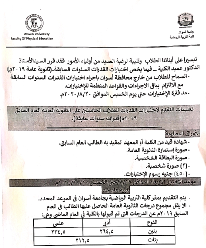 تعليمات التقدم لاختبارات القدرات للطلاب الحاصلين على الثانوية العامة للعام السابق ٢٠١٩ August 19, 2020editor portal تعليمات التقدم لاختبارات القدرات للطلاب الحاصلين على الثانوية العامة للعام السابق ٢٠١٩