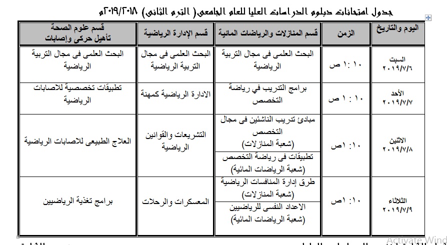 جدول إمتحانات دبلوم الدراسات العليا للعام الجامعى الترم الثانى 2018 / 2019 June 29, 2019fatma جدول إمتحانات دبلوم الدراسات العليا للعام الجامعى الترم الثانى 2018 / 2019 • جدول إمتحانات دبلوم الدراسات العليا للعام الجامعى (الترم الثانى) 2018 / 2019 .