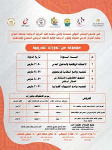 على هامش الملتقى الدولى للسياحة والتى تنظمه كلية التربية الرياضية جامعة أسوان ينظم المركز الدولى لعلوم وفنون الرياضة التابع للاتحاد الرياضى المصرى للجامعات مجموعة من الدورات التدريبية